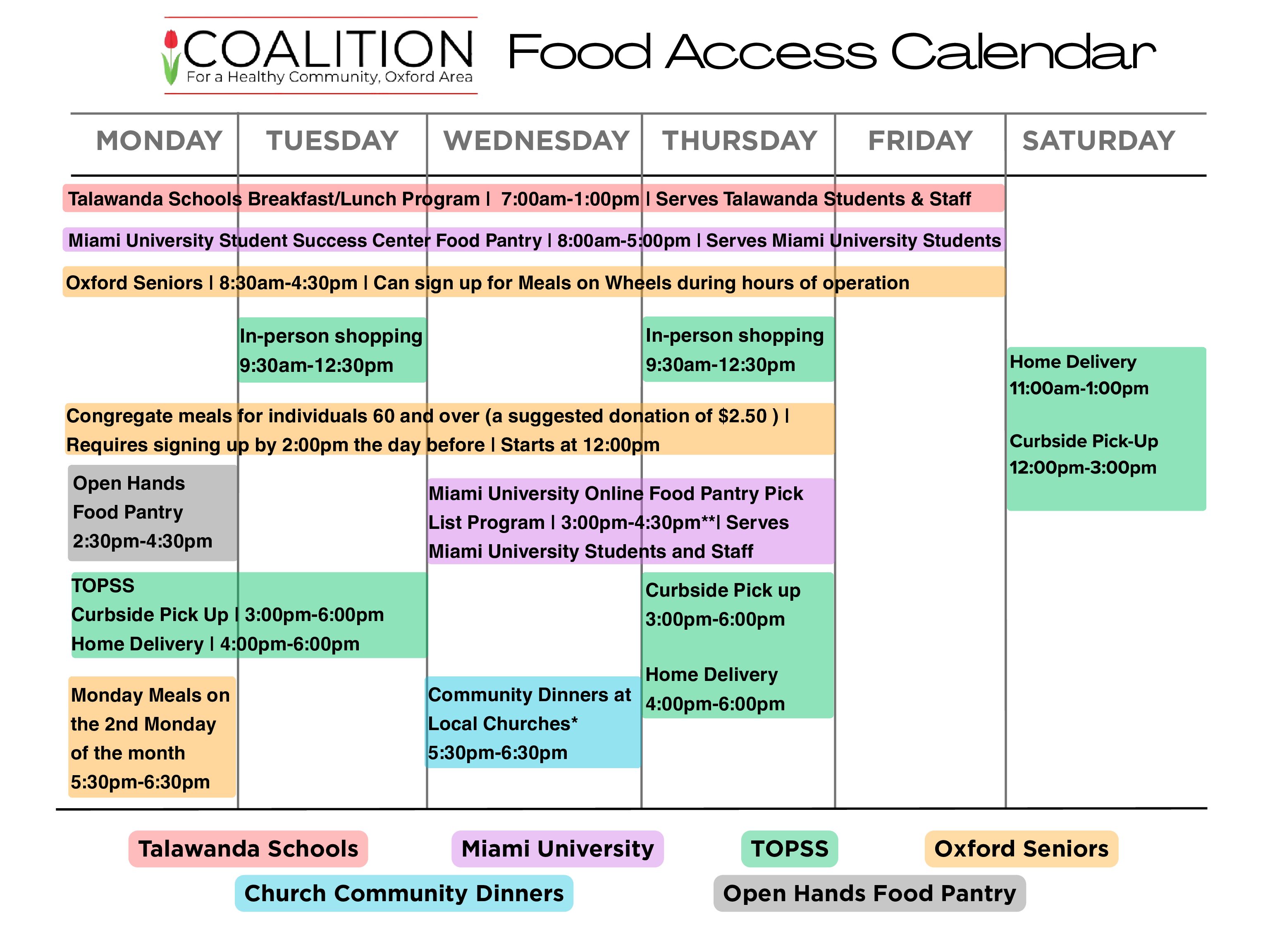 This map shows where food can be accessed in the Talawanda School District and specific details regarding foods offered, hours of operation, and contact information.